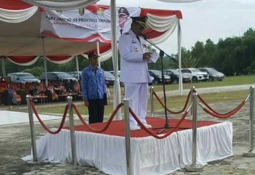 Dalam Sambutannya, Bupati membacakan amanat Gubernur Lampung, bahwa di hari jadi Provinsi Lampung ke-55 ini, mari kita bersama-sama membangun komitmen untuk melakukan perubahan ke arah yang lebih baik. Hal ini tentunya sejalan dengan tema yang diusung pada peringatan Hari Ulang Tahun (HUT) Provinsi Lampung Ke-55, yaitu “Lampung Maju Untuk Indonesia”.