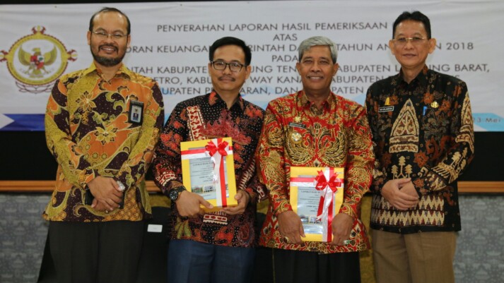 Predikat WTP yang diperoleh Kabupaten Lampung Tengah bersamaan dengan penyerahan Laporan Hasil Pemeriksaan (LHP) atas Laporan Keuangan Pemerintah Daerah (LKPD) Kabupaten Lampung Tengah Tahun Anggaran 2018 di kantor BPK RI Perwakilan Provinsi Lampung, Rabu (23/05/2019).