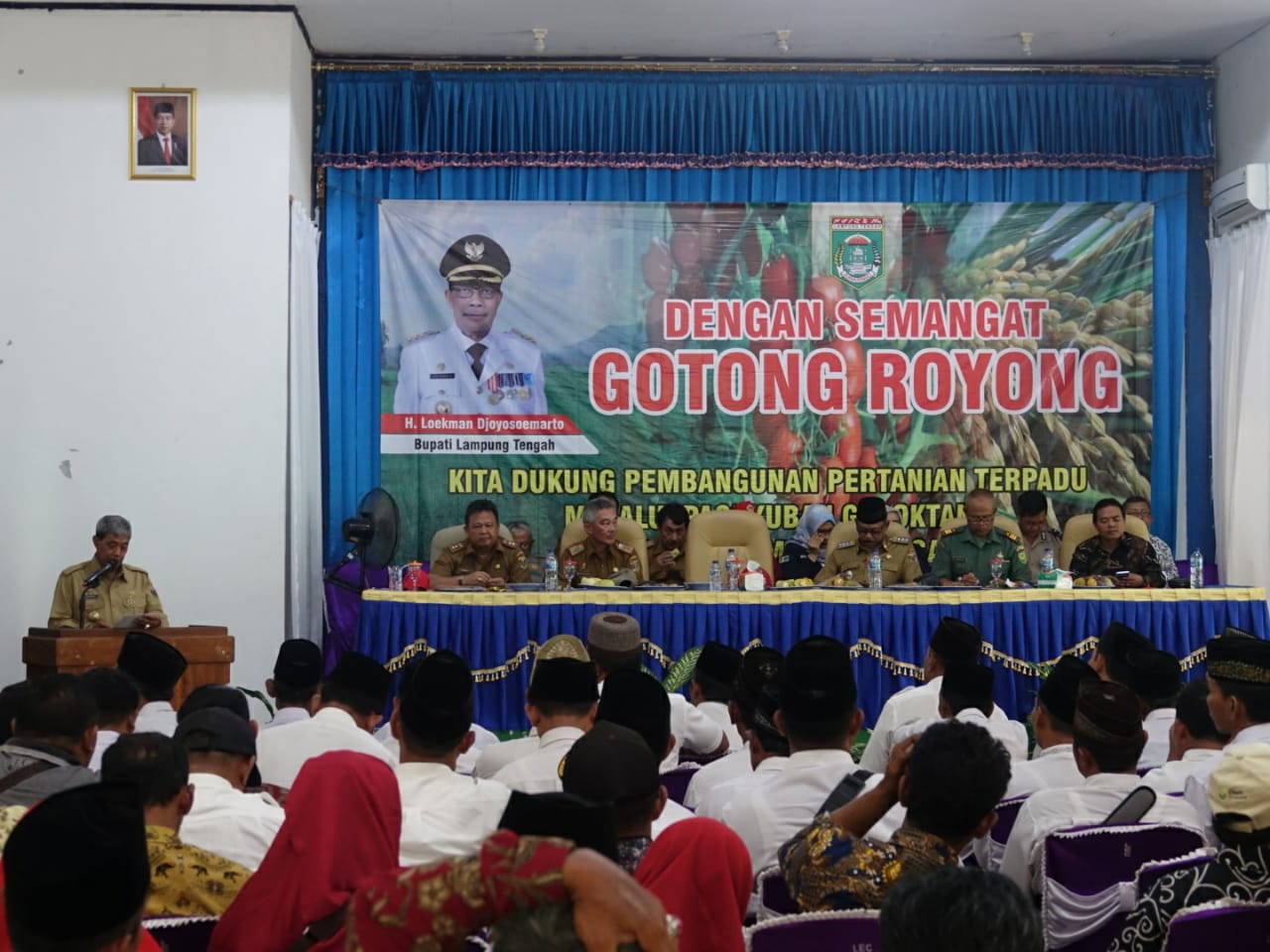 LAMPUNG TENGAH – Bupati Lampung Tengah (Lamteng) Loekman Djoyosoemarto mengukuhkan Paguyuban Gabungan Kelompok Tani (Gapoktan) se-kabupaten setempat masa bhakti 2019-2024 di Aula LEC Paramarta, Kecamatan Seputih Banyak, Senin (25/11/2109) .