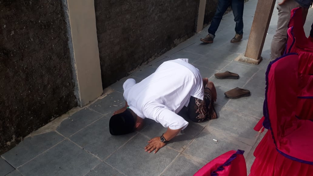 LAMPUNG TENGAH – Bentuk rasa syukur dan sembah sujud, dari Calon Wakil Bupati Lampung Tengah, Kyai lmam Suhadi yang berpasangan dengan Nessy Khalvia Mustafa, atas di tolaknya gugatan yang di laporkan oleh salah satu Paslon nomor urut 2, Musa – Dito di Badan Pengawas Pemilihan Umum (Bawaslu) Lampung Tengah.