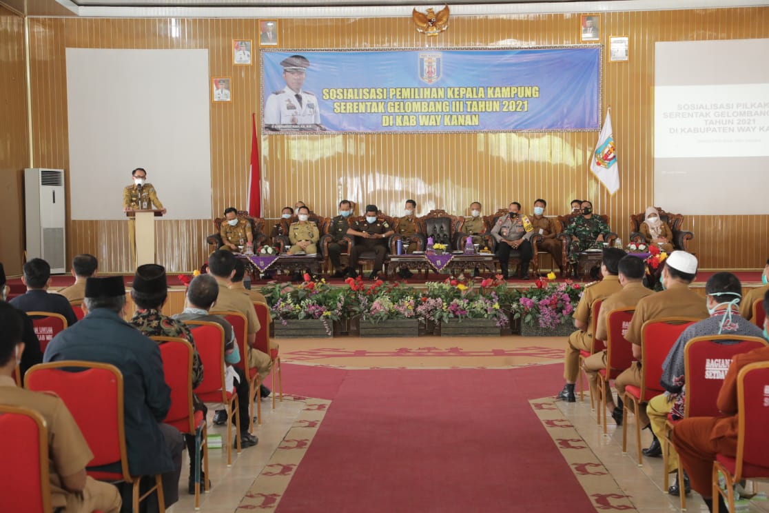 Bupati Way Kanan menyampaikan bahwa dengan terbitnya Permendagri 72 tahun 2020 tentang Perubahan ke-2 atas Permendagri 112 tahun 2014 tentang Pemilihan Kepala Desa, maka pemilihan Kepala Kampung di Kabupaten Way Kanan tidak jauh berbeda dengan Pemilihan Kepala Daerah 9 Desember 2020 dengan menerapkan Protokol Kesehatan.