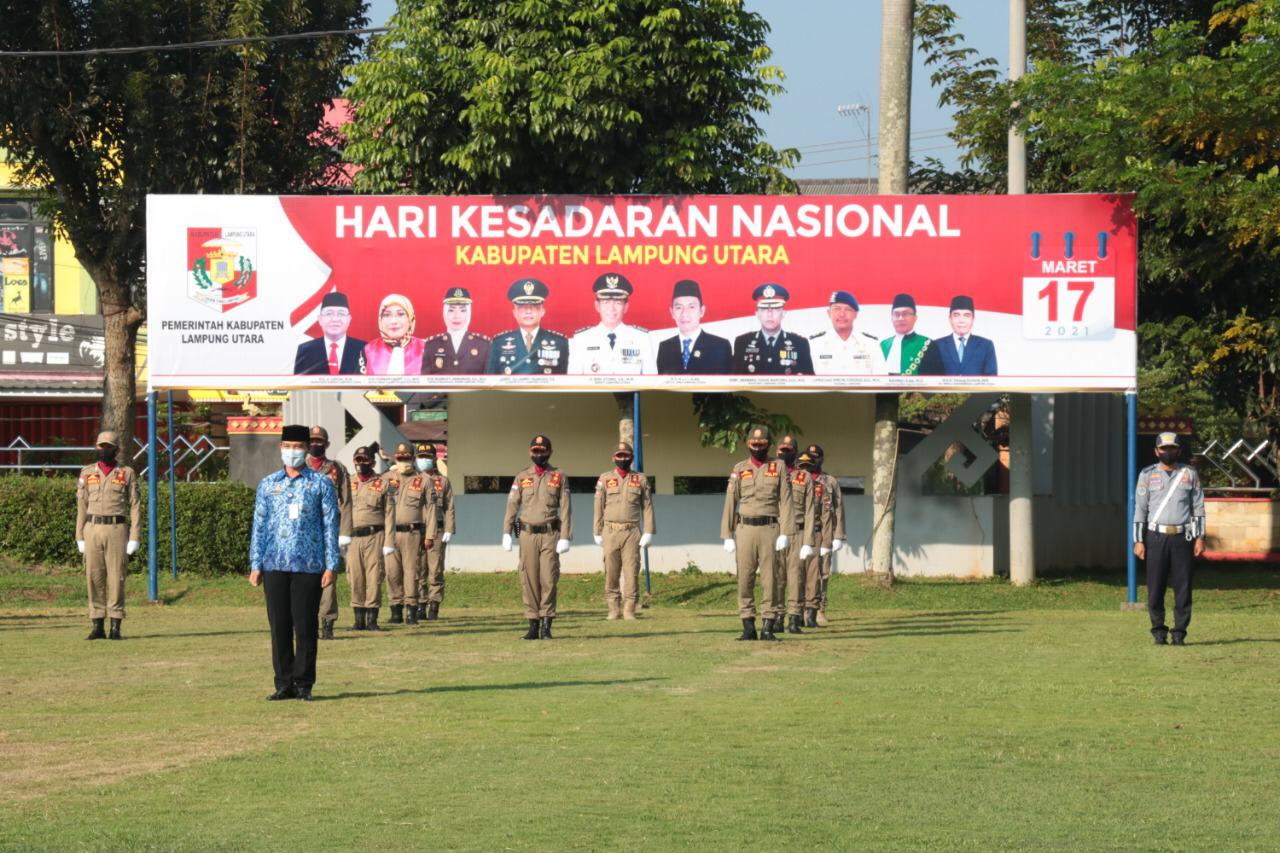 GARISTENGAH.COM – Pemerintah Kabupaten (Pemkab) Lampung Utara (Lampura) bersama Unsur TNI dan Polri menggelar Upacara Hari Kesadaran Nasional di Halaman Kantor Pemkab setempat, Rabu (17/03/2021).
