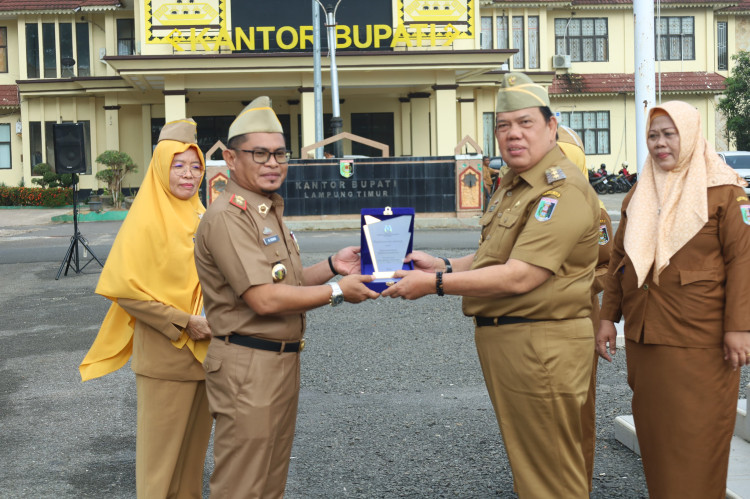 LAMPUNG TIMUR – Wakil Lampung Timur Azwar Hadi menjadi Pembina Apel mingguan di Lingkungan Pemerintah Kabupaten Lampung Timur, petugas apel Dinas Perpustakaan dan Kearsipan Kabupaten Lampung Timur, senin (10/02/2025).