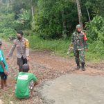 PELITAINDONESIA – Bhabinkamtibmas Polsek Banjit membantu warga binaan dalam kegiatan gotong royong pengecoran jalan bertempat di Kampung Sumber Sari Kecamatan Banjit Kabupaten